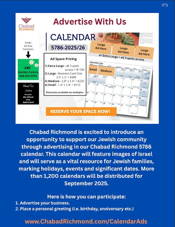Jewish Calendar Advertising opportunity!